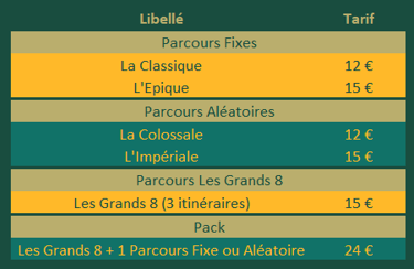 Le Participant est invité à s’inscrire directement sur le site du partenaire Sporkrono. Il choisit un ou plusieurs parcours suivants :